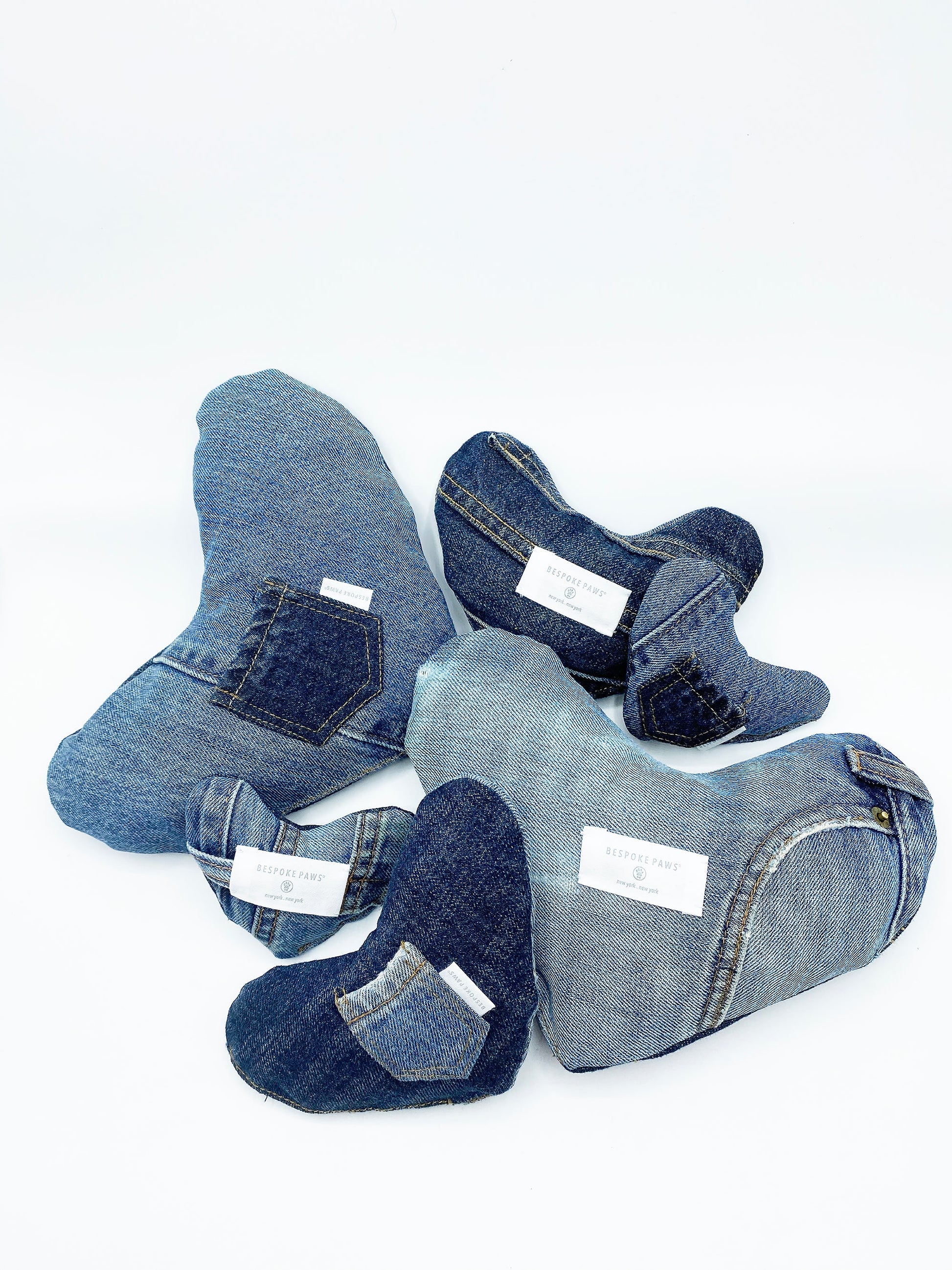 Each piece is unique, and made from repurposed denim jeans to bring you a special one-of-a-kind toy, and help save the environment as an eco-friendly solution to pet toys.