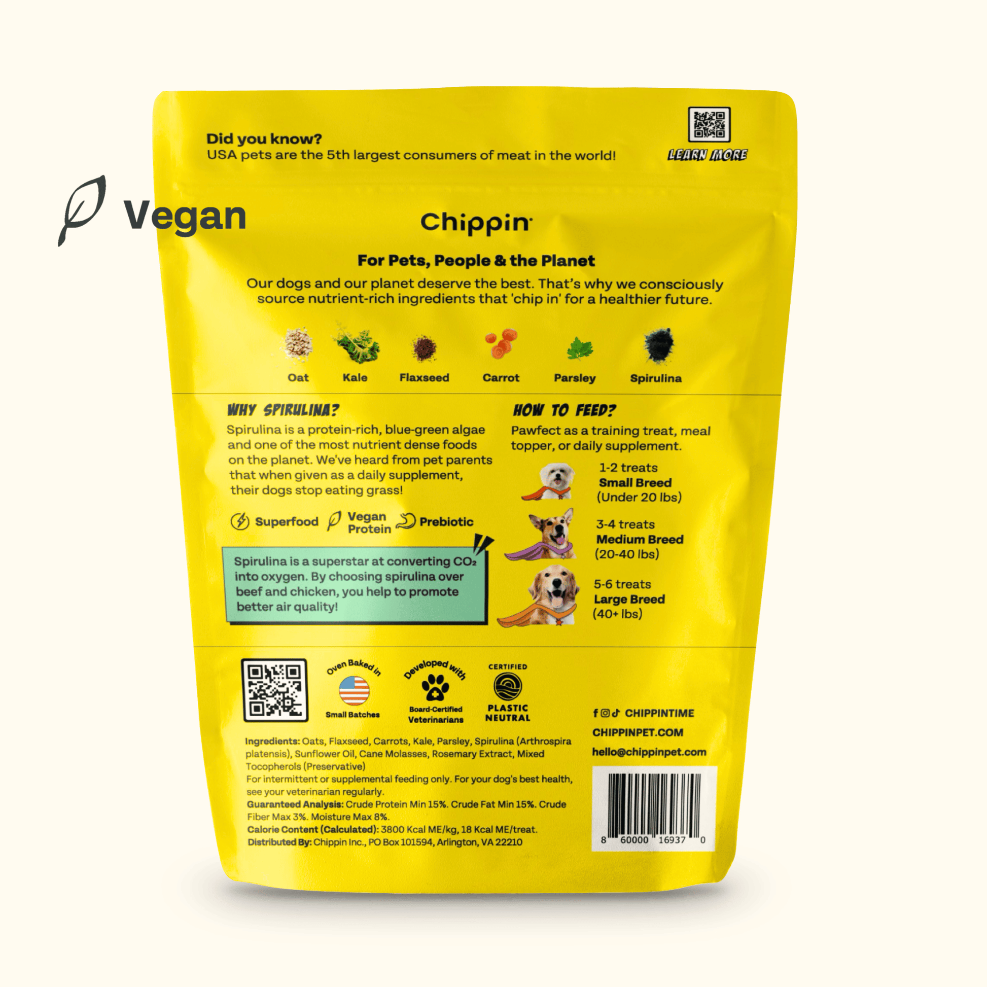 Veggie Dailies are a veggie-packed crunchy treat featuring kale, carrots, and spirulina — a vegan form of protein and natural probiotic that supports digestion. Daily greens help eliminate grass eating and ensure a healthy gut.